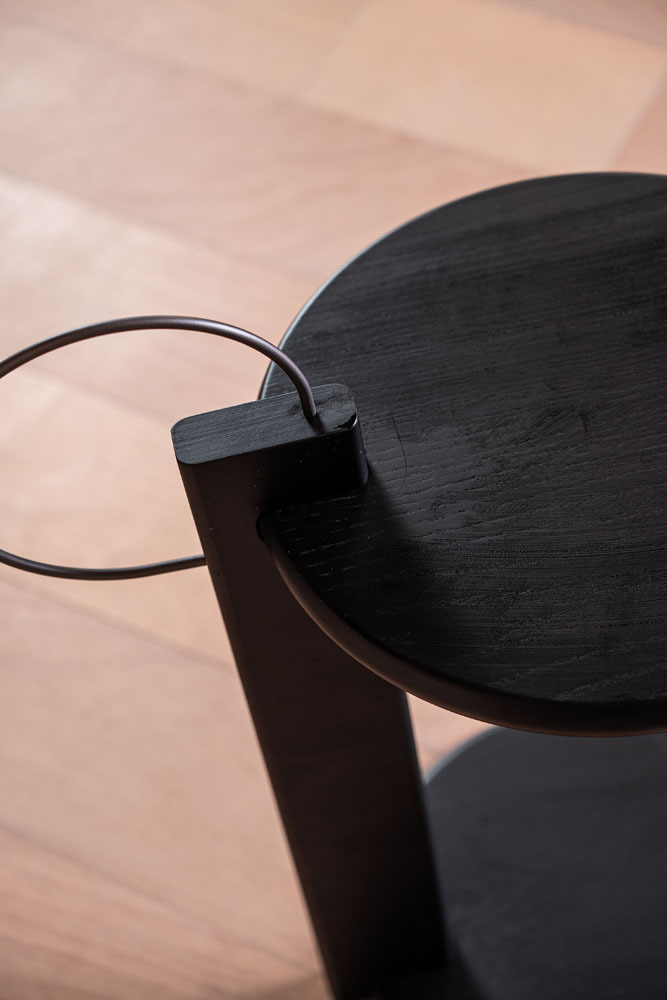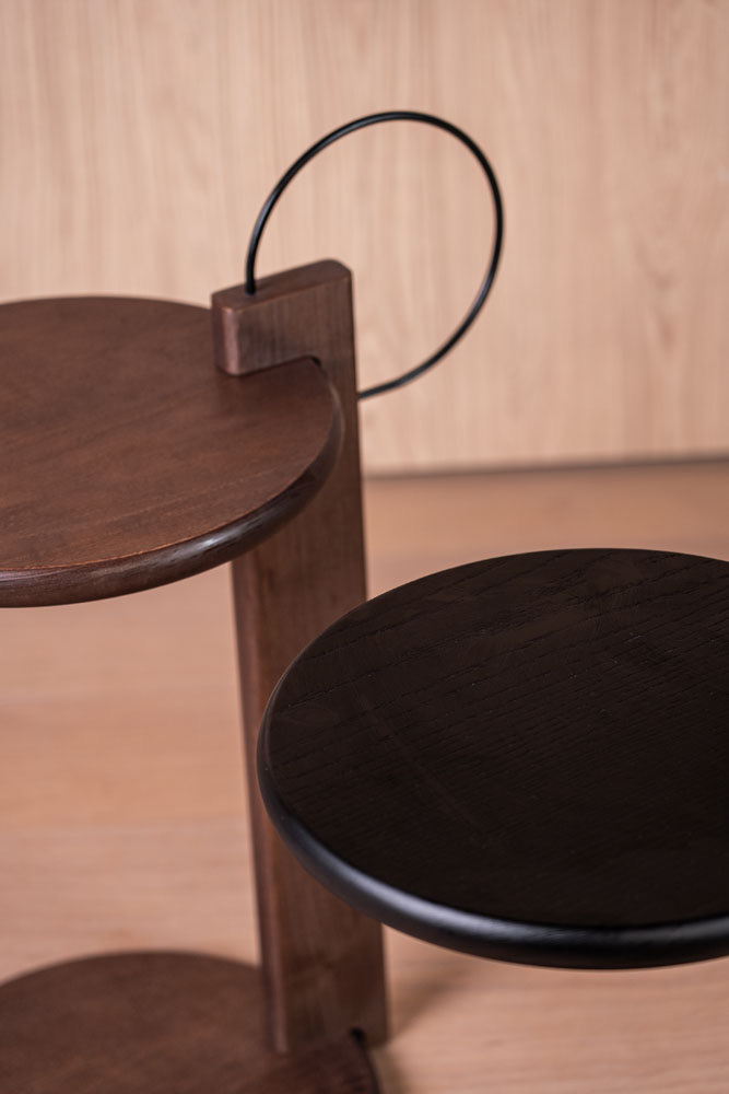 Escultórica en su forma, esta mesa se convierte en un detalle especial dentro de los espacios, aportando ligereza y, al mismo tiempo, una fuerte expresión estética. Su diseño combina practicidad y funcionalidad, permitiendo un fácil desplazamiento y la posibilidad de adaptarse a diferentes ambientes del hogar.