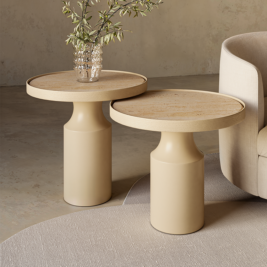 Medidas: Mesa Alta: A 59cm | D 60cm Mesa Baja: A 54cm | D 60cm