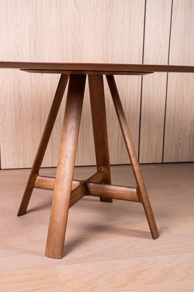 La mesa Capri es la síntesis entre ligereza visual y solidez constructiva.