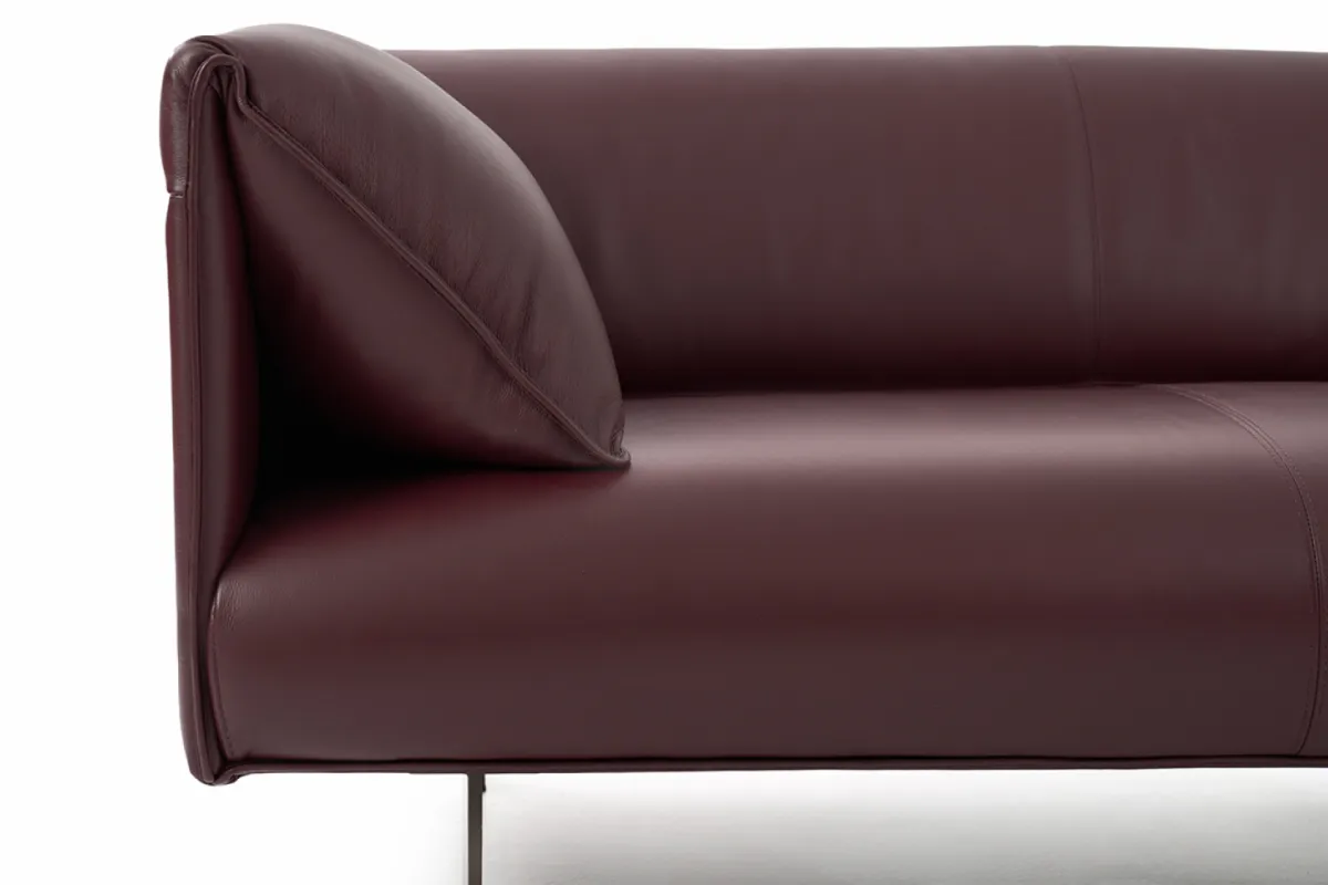 Sofá revestido en cuero 100% legítimo, desarrollado con estructura en madera de reforestación de eucalipto, multilaminado de 15 mm y MDP de alta densidad, garantizando resistencia y estabilidad.