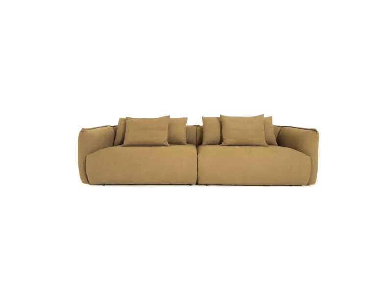 Incluye almohadas de respaldo sueltas, con opción de uso abiertas o cerradas, sin detalle de costura y con una altura de 55 cm, además de almohadas decorativas sueltas de 65 x 55 cm.